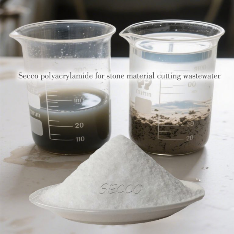 Beberapa air limbah batu mengandung polutan organik atau komponen kompleks. PAM kationik (seperti berat molekul 8 juta dan derajat ion 20% -30%) dapat meningkatkan efek flokulasi melalui netralisasi muatan. Sebuah kasus tertentu di Suzhou menunjukkan bahwa PAM cationic memiliki efek yang luar biasa pada pengolahan padatan tersuspensi dan juga memiliki efek bantu pada kecepatan rotasi mesin pemotong dan penggunaan ulang air limbah.